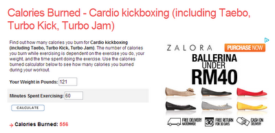 Seperti biasa, jumlah kalori yg tbakar adalah berdasarkan berat badan. jadi itu ada untuk 55kg=121pound. iklan zalora tu takde kaitan okkkkkkk