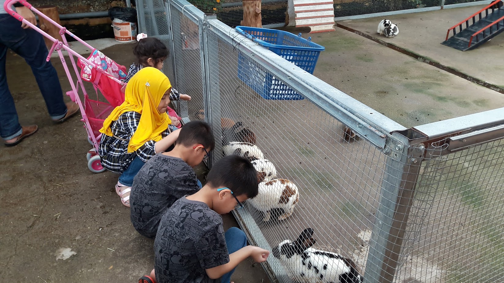 Kami beli rumput sebungkus tu, bolehla bagi arnab makan.